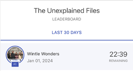We had a really good time in this room and loved being able to play with our friends Amy and Jason. The room was clever and we thought that the clues were fun. This was a much better experience than our first time at Crack the Code. We would say that this is not a beginner friendly room. Amy and Jason had limited escape room experiences before this one, and they managed to solve quite a few puzzles, but we are all used to thinking about these kinds of clues. The success rate is only 32% and as you can see in our picture below, we have the fastest escape time in the past 30 days.